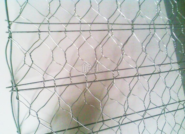 加強(qiáng)筋石籠網(wǎng)又叫做加筋格賓網(wǎng)、掛網(wǎng)、攔石網(wǎng)帶、山地防護(hù)網(wǎng)等,是在六角網(wǎng)編織時(shí),加上直的鐵絲,或者是垂直編織方向或平行方向編織的鐵絲。