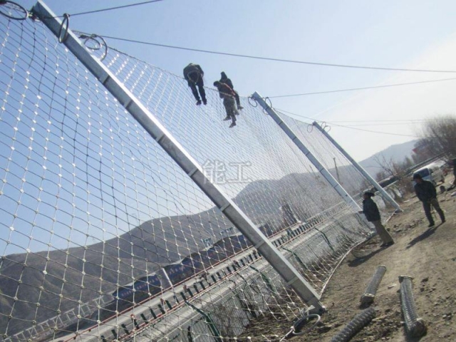 被動防護網(wǎng)系統(tǒng)是將以菱形鋼絲繩網(wǎng)或環(huán)形網(wǎng)為主的柔性柵欄設(shè)置于斜坡上一定位置,用于攔截斜坡上的滾落石(或落物)以避免其破壞擬保護的對象,因此也稱為攔石網(wǎng):當(dāng)設(shè)置于泥石流區(qū)內(nèi)時,便可形成攔截泥石流體內(nèi)固體大顆粒的柔性格柵壩。SNS被動防護網(wǎng)系統(tǒng)采用高強熱鍍鋅鋼絲繩、鋼絲網(wǎng),不低于AB級的防腐處理,其防腐壽命根據(jù)環(huán)境條件的不同一般可大于30-50年不等。被動防護系統(tǒng)主要對邊坡飛石、落石、雨水過多造成的坡體坍塌,防護能量級內(nèi)的滑坡、泥石流等防治,減輕災(zāi)害的受損程度,其系統(tǒng)與相配合的消能裝置、支撐柱、支撐繩及拉錨等,攔截能旱級可達(dá)500kj---1000kj。