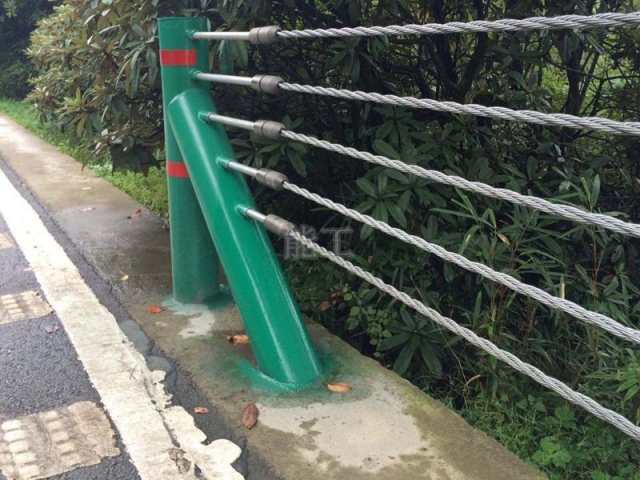 纜索護(hù)欄是柔性護(hù)欄的主要代表形式,它是一種以數(shù)根施加初張力的纜索固定于立柱上而組成的結(jié)構(gòu),它主要依靠纜索的拉應(yīng)力來抵抗車輛的碰撞,吸收碰撞能量。 纜索護(hù)欄分為浸塑B型(普通型),浸塑A型(加強(qiáng)型);熱鍍鋅 B型(普通型),熱鍍鋅A型(加強(qiáng)型)。A級(jí)采用6根纜索,B級(jí)采用5根纜索,A級(jí)和B級(jí)纜索的初張力采用201d~,纜索采用具有較高強(qiáng)度和抗腐性能優(yōu)良的3x7鍍鋅/右擰構(gòu)造。 與傳統(tǒng)護(hù)欄相比,耐柔韌性好、抗沖擊力強(qiáng)、防撞性能佳、耐雪載、耐風(fēng)載能力大等特點(diǎn)。此外,通透性更好的纜索護(hù)欄視野廣闊,將更有利于游客欣賞自然景觀。 產(chǎn)品用于高速公路,鐵路以及橋梁兩側(cè)的防護(hù)帶;機(jī)場(chǎng)、港口、碼頭的安全防護(hù);高速公路、山地和旅游景區(qū)道路安全防護(hù)。